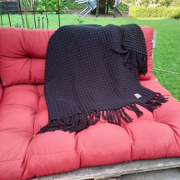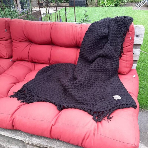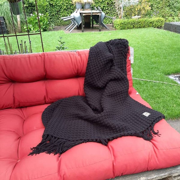 Mooie zwart kleurige woondeken. Staat leuk in je woonkamer of in je tuin. Leuk over de bank of over je tuinstoel. Fijn om bij koude avonden om je heen te slaan. De woondeken is lekker zacht en warm.