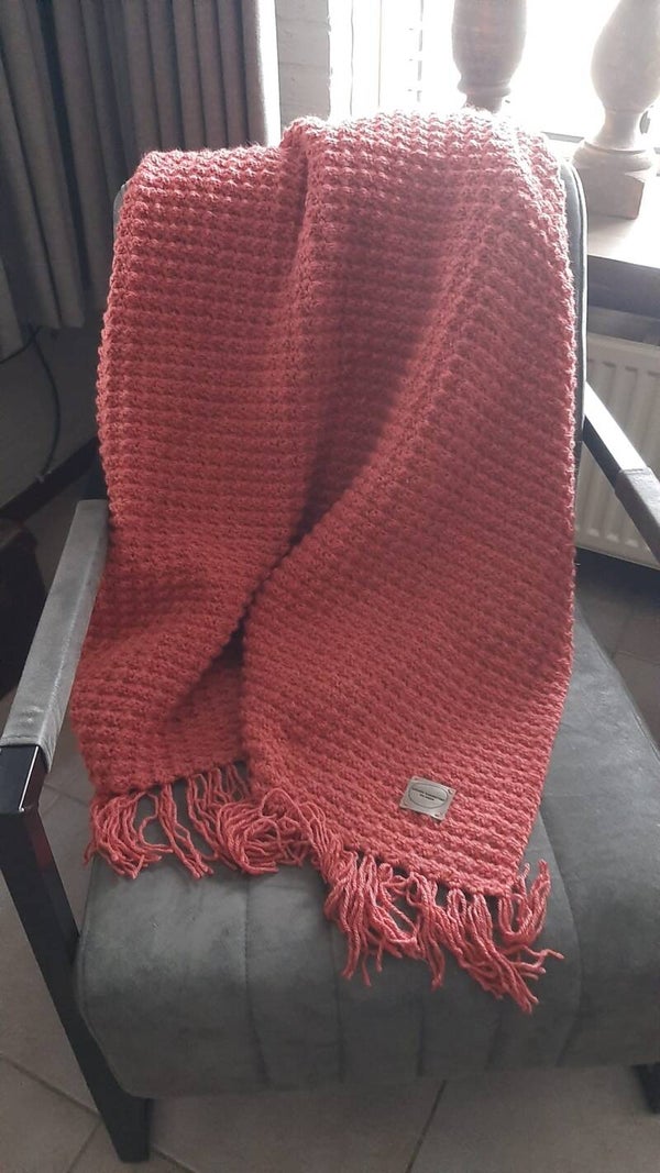 Mooie oud roze kleurige woondeken. Staat leuk in je interieur. Fijn voor de koude dagen om over je benen heen te slaan.