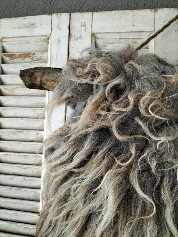 Hele mooie unieke wandhanger. Van natuurlijke schapenvacht. Het schaap loopt nog rond in de wei en de vacht gebruiken we om deze mooie wandhanger te maken. Het is een natuurlijk product dus is uniek!