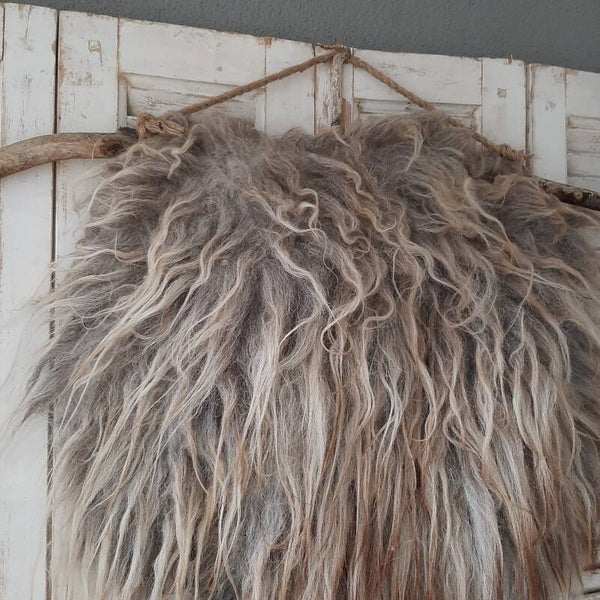 Hele mooie unieke wandhanger. Van natuurlijke schapenvacht. Het schaap loopt nog rond in de wei en de vacht gebruiken we om deze mooie wandhanger te maken. Het is een natuurlijk product dus is uniek!