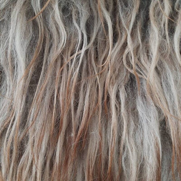Het is mogelijk dat er nog wat haren van de hanger uitvallen en er nog bijv zand uit komt. De vachten zijn helemaal gewassen dus wel zo schoon als mogelijk. De hanger is bedoeld voor decoratief gebruik. De viltlaag van deze vacht is wat dunner, daarom erg licht van gewicht.