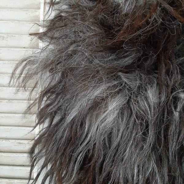 Het is mogelijk dat er nog wat haren van de hanger uitvallen en er nog bijv zand uit komt. De vachten zijn helemaal gewassen dus wel zo schoon als mogelijk. De hanger is bedoeld voor decoratief gebruik.