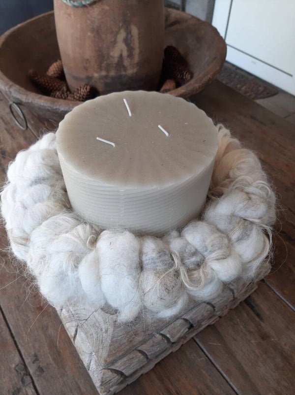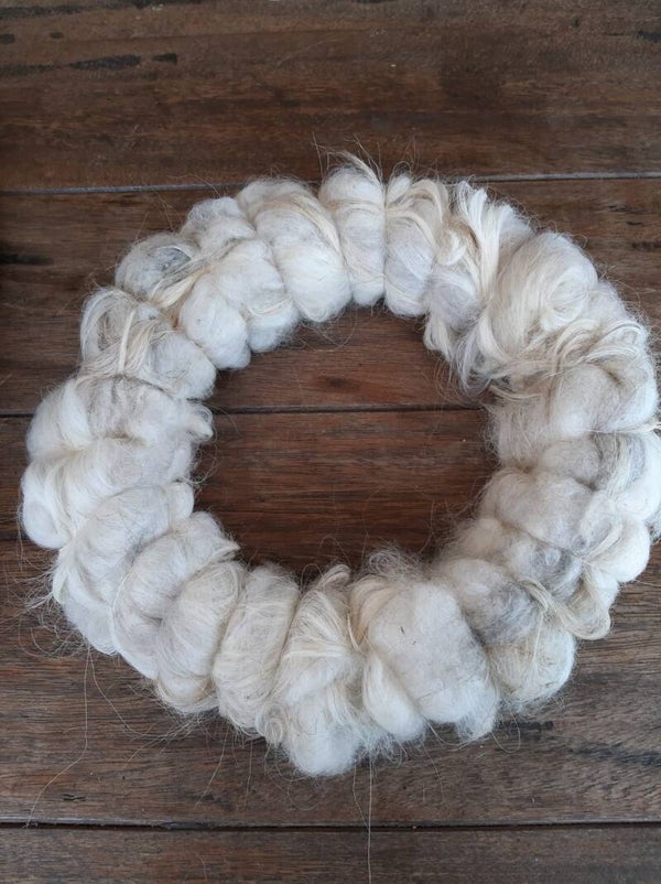 Een hele mooie schapen wol krans van gewassen schapenwol. Het schaap loopt nog rond in de wei en de wol gebruiken we om mooie producten mee te maken.