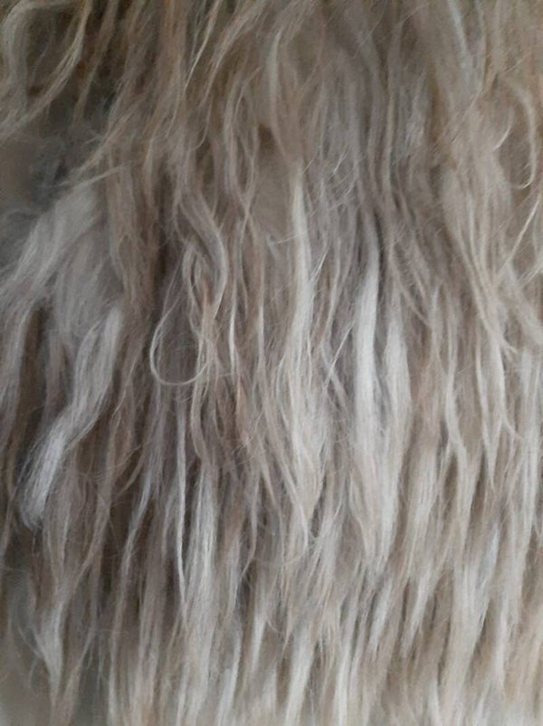 Het is mogelijk dat er nog wat haren van de hanger uitvallen en er nog bijv zand uit komt. De vachten zijn helemaal gewassen dus wel zo schoon als mogelijk. De hanger is bedoeld voor decoratief gebruik.