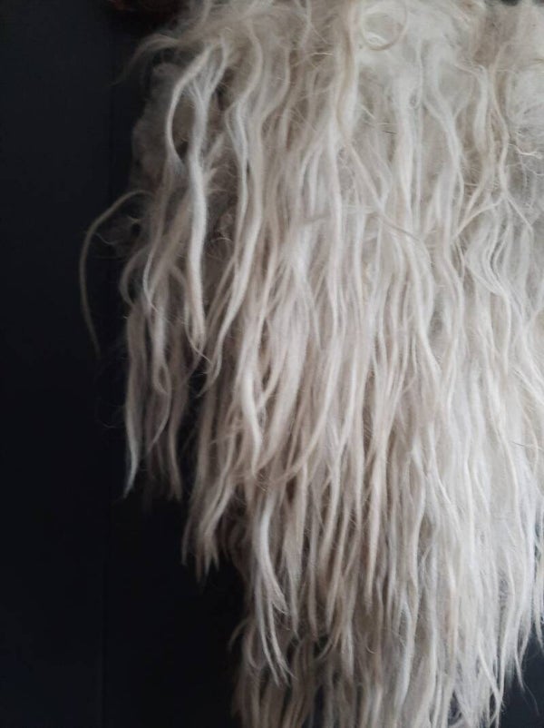 Hele mooie unieke wandhanger. Van natuurlijke schapenvacht. Het schaap loopt nog rond in de wei en de vacht gebruiken we om deze mooie wandhanger te maken. Het is een natuurlijk product dus is uniek!