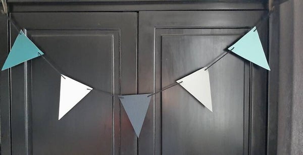 Een super leuke leren vlaggenlijn in de groentinten! Leuk voor bijvoorbeeld een kinder kamer of bij een feestje!