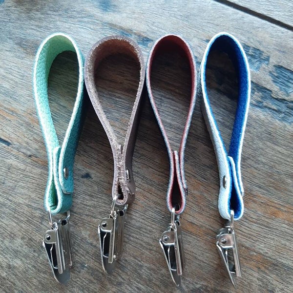 Deze leuke leren handdoekklemmen zijn super handig om je handdoek of theedoek aan te hangen in bijvoorbeeld de keuken, wc of badkamer.
