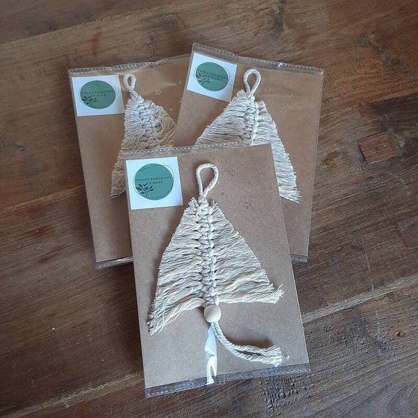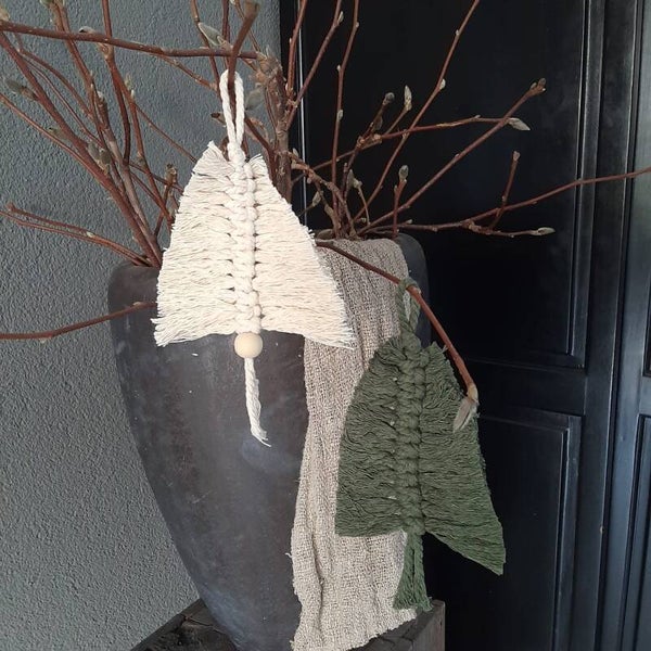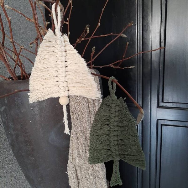 Leuk off white kleurig macrame kerstboompje. Mooi voor aan een tak of in de kerstboom.